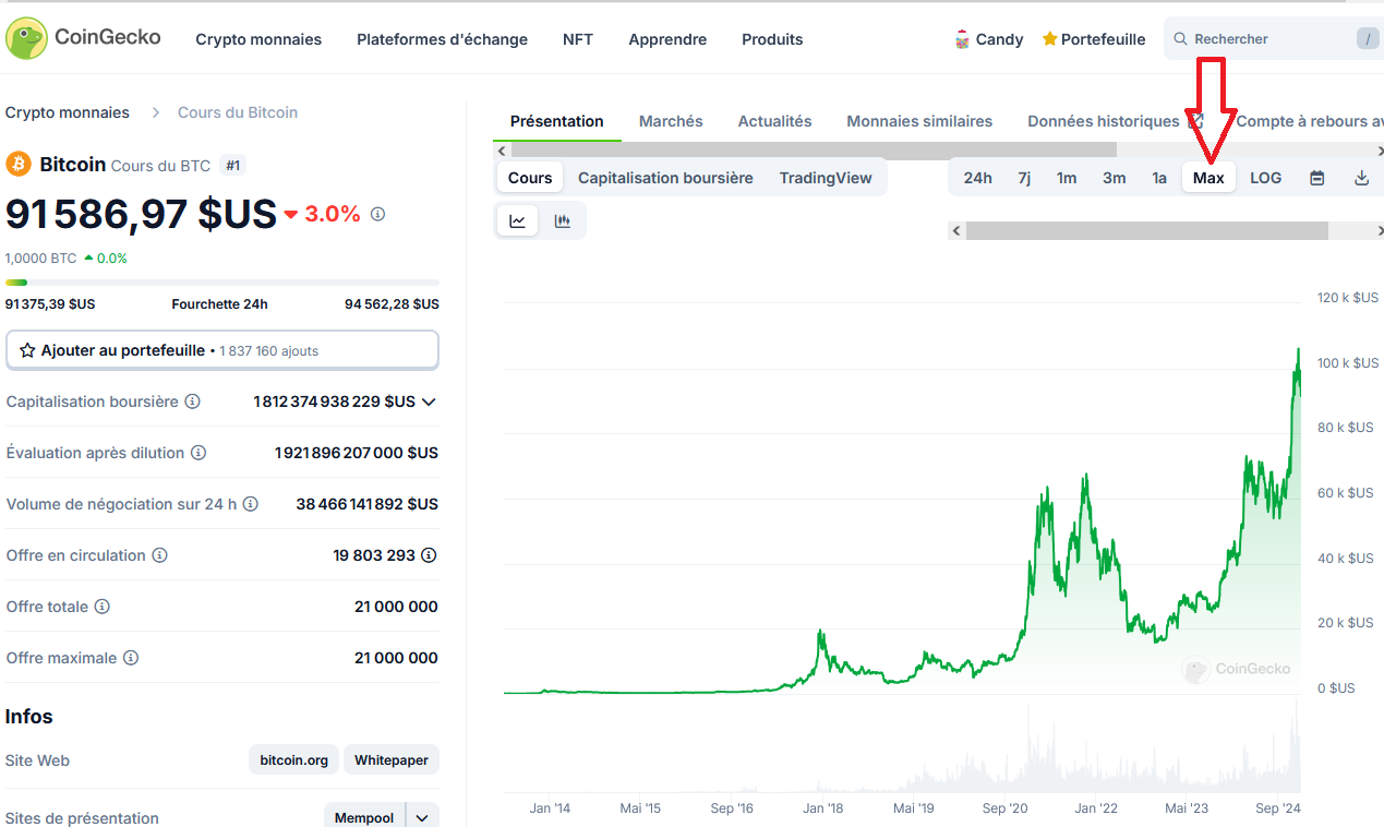 Une règle d’or pour tout investisseur est d’acheter lorsque les prix sont bas et de vendre lorsqu’ils sont hauts. Pour savoir lorsque les prix sont au plus bas, il suffit de vérifier l’historique sur les 3 à 5 dernières années par exemple. Vous pouvez facilement et sans enregistrement faire cette vérification sur le site : https://www.coingecko.com/fr